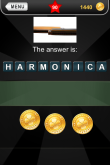 The answer to level 90 in What's that Pic - Searchlight is HARMONICA.