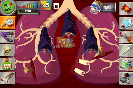 - Staple the deep wounds from the bats. Cauterize and apply Dr. Bleed Pain Away.