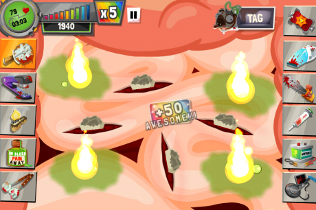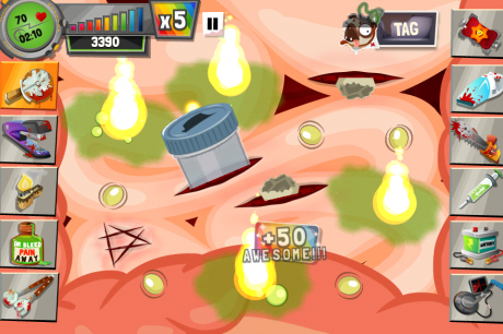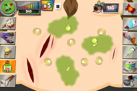 - Use the red syringe to get rid of the boils and poisons OR you can use the pizza slicer and vacuum to remove them.