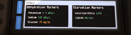 Unlike other games which use random statistics like Stamina, Lacuna Passage measures vitals in realistic terms, such as potassium levels, blood glucose, blood pressure, heart rate, oxygen saturation, body temperature and more.
