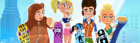 Players choose between four different characters - Matt, Christy, Barry and Mia - each with special abilities, such as triple jump, shield or grinding bonus.