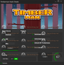 Timberman - Hacks Timberman Hack Unlimited Gold, Unlock all timbermans, Unlimited Score, Remove ads here Jump to a section: Home Releases Credits Overview Hacks Walkthrough Achievements Cheats Share Hacks with others < Prev: Overview Next: Walkthrough > Last updated by Jeffrey.374, 1st August Do you want to earn money creating pages just like this? Gamewise is currently looking for writers, find out more here. Around the Network Timberman Brainwaves View all → 19th March, 1 replies http://hackylicious.com/1681/ Timberman Hacks