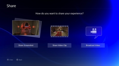 In addition to being able to Livestream game content with the Share button on the DualShock 4, players will also be able to share videos and screenshots with other people online. At launch, players can share videos and screenshots with their friends on Facebook, as well as images with their followers on Twitter. There will not be the ability to upload videos of your gameplay to Youtube at the system's launch.